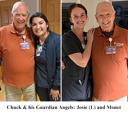 While spending those nights in the hospital, Chuck was under the care of day and night nurses Josie and Monet, whom he calls his ‘guardian angels.’ “They kept me alive for 2 days. They were awfully nice; I really liked them. The entire care I received was excellent!”