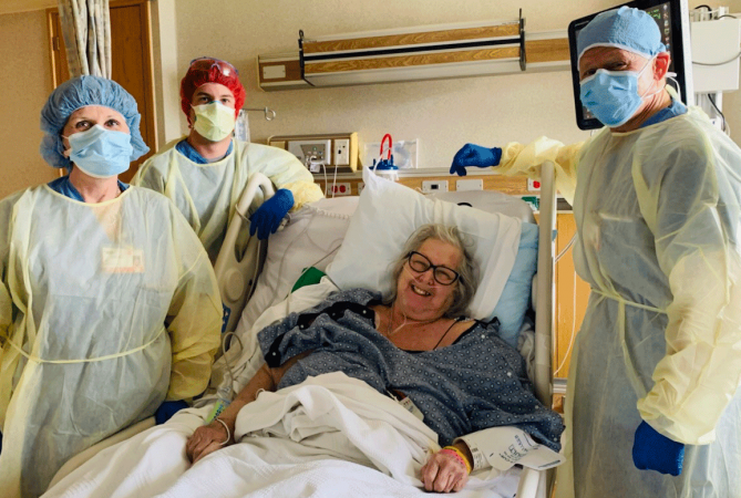 Schumer was intubated upon arriving at the hospital and was taken to the COVID-19 unit, where critical care nurses kept in touch with her family with frequent updates on her condition. When she was well enough, nurses set up FaceTime interviews with Schumer’s children, so they could see and talk to their mom since visitors are restricted because of COVID-19.