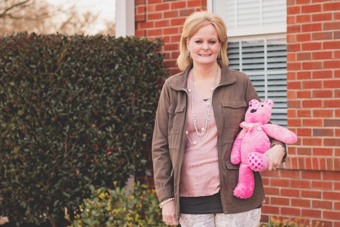 Shortly after getting the news, a familiar pink bear arrived in Meri’s mail with a card that said, “Dear Meri, I think you need me more right now than Maeschelle does, so I’m going to come spend some time with you.”
