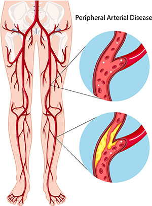 Peripheral arterial disease (PAD) is the narrowing and blockage of the arteries that carry blood from the heart to the legs. The blockage is caused by atherosclerosis, a buildup of fatty plaque in the arteries.
